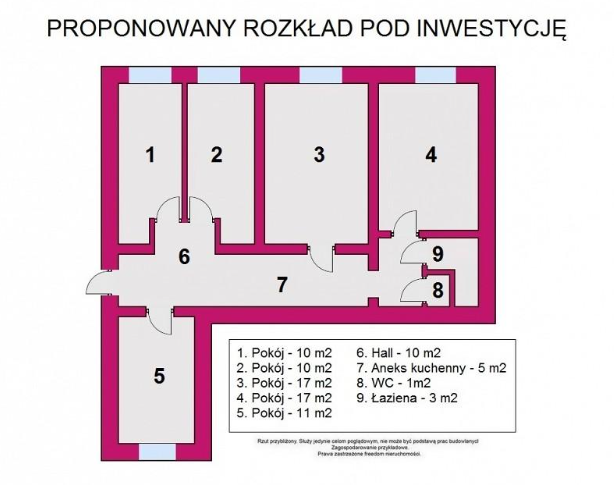 - Ilość posiadanych pokoi (czy istnieje możliwość przebudowy na większą ilość pokoi)